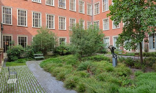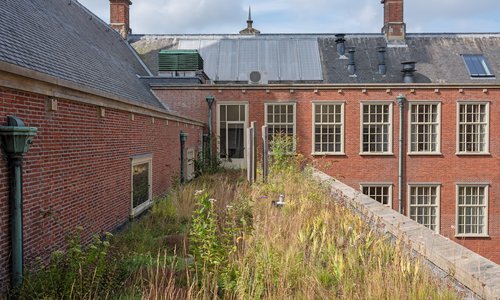 Het stadhuis van Leiden is recent geheel vernieuwd. De hof in het stadhuis heeft een centraal gelegen positie in het gebouw. Door de vroegere glasoverkapping was het atrium een binnenruimte. We hebben de kap verwijderd en zo weer een groene hof midden in het stadhuis gemaakt, wat een grote kwaliteitsimpuls voor het gehele gebouw is. Nu zorgen zon, schaduw, water, mens en dier voor een diverse, écht groene invulling van een historisch en ecologisch relevant hof. Bekijk het project >