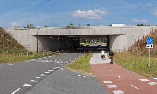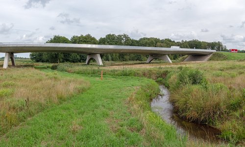 De Nieuwe Verbinding N69 vormt als groenste verbinding van Brabant een nieuwe provinciale weg tussen Veldhoven en de bestaande N69 ten zuiden van Valkenswaard. De belangrijkste opgave voor de inpassing van het nieuwe tracé was het minimaliseren van de impact op het waardevolle landschap, natuur, waterhuishouding en recreatie van de beekdalen van de Run en de Keersop. Hiervoor is een robuust groen raamwerk ontworpen over, onder en langs het nieuwe tracé en zijn alle kunstwerken als slanke ingetogen bogen door-ontworpen. Bekijk het project >