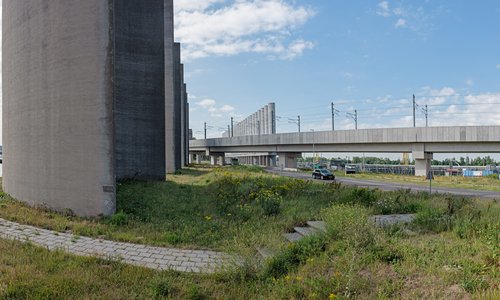 De Rozenburgsesluis is een belangrijke corridor in het Rotterdamse Havengebied. De plek is bekend vanwege het sculpturale windscherm voor de scheepvaart, goed zichtbaar vanaf de A15. Dwars door het iconische windscherm en over de Rozenburgsesluis wordt door het Havenbedrijf een vier kilometer lang spoorviaduct aangelegd: het Theemswegtracé. Bekijk het project >