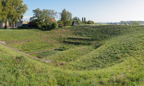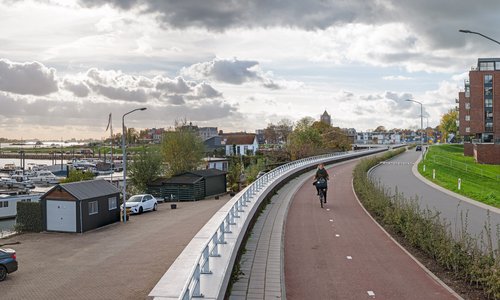 De versterking van dijken is decennialang beschouwd als een strikt civieltechnische opgave. Vanaf de jaren ’90 kwam daar langzaam verandering in en werd de landschappelijke vormgeving van dijken gezien als een integrale ontwerpopgave op de grens van civiele techniek en landschapsarchitectuur, met aandacht voor beleving, medegebruik en historie. De dijk heeft een concave opbouw: aan de bovenkant is hij small en steil, aan de onderkant breed aflopend. Hierdoor werd aan de technische eisen tegemoetgekomen maar kreeg het profiel tegelijkertijd een zekere spanning. Er is verschil gemaakt tussen de inrichting aan de binnendijkse en de buitendijkse zijde van de dijk. Bekijk het project >