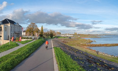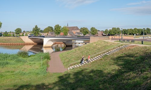 Dit betreft het meest complexe project binnen het programma Ruimte voor de Rivier. Een unieke opgave waarbij naast waterhuishoudkundige maatregelen, zoals de aanleg van een nevengeul met inlaatwerk, dijkverleggingen en natuurontwikkeling, drie nieuwe bruggen worden gebouwd. Bovendien komt er middenin de rivier een bewoond eiland te liggen. H+N+S vervulde de rol van coördinerend architect en was verantwoordelijk voor het landschapsontwerp. Bekijk het project >