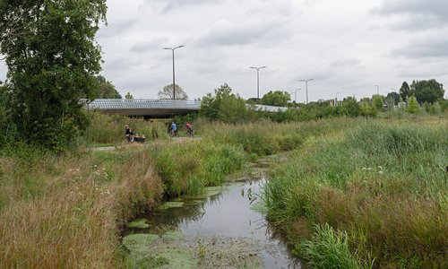 In opdracht van Schiphol is door een multidisciplinair projectteam gewerkt aan een wereldprimeur. Een park dat bij de gratie van het door opstijgende vliegtuigen veroorzaakte laagfrequente grondgeluid bestaat. Het parklandschap draagt door zijn vormgeving aan een noemenswaardige reductie van de geluidsoverlast bij. Bekijk het project >