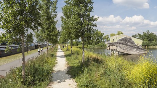De dijkversterking in Tiel bood, naast waterveiligheid, een kans om meer samenhang en ruimtelijke kwaliteit te realiseren in de omgeving. Het traject loopt vanaf de sluis in het Amsterdam-Rijnkanaal, langs de historische binnenstad van Tiel tot aan het inundatiekanaal, onderdeel van de Nieuwe Hollandse Waterlinie. De historische stadswallen van Tiel zijn een belangrijke identiteitsdrager van de stad en vormen een herkenbaar en onderscheidend element in het dijktraject. De opgave was hier dan ook: een samenhangend ontwerp voor de historische delen die behouden zijn gebleven en de delen die verloren zijn gegaan, waarbij recht wordt gedaan aan de variatie in geschiedenis en gebruik. Bekijk hier het project >