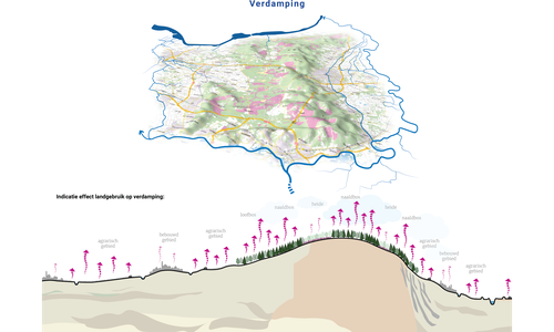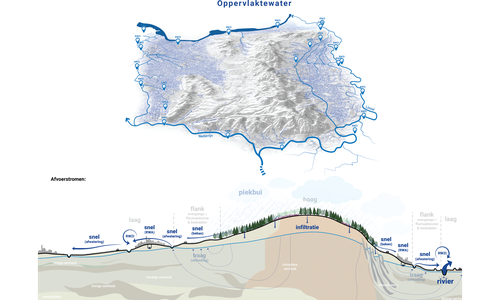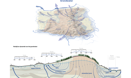 In het watersysteem op en rondom de Veluwe regent het jaarlijks meer dan dat er verdampt, waardoor er veel regenwater de bodem in kan zakken. De geschikte ondergrond maakt het mogelijk dat er onder de Veluwe veel grondwater zit. Toch is er afhankelijk van het moment en de locatie soms teveel water en andere momenten te weinig water. Met dit interactieve beeldverhaal geven we antwoord op de vraag waar dit mee te maken heeft en bieden we houvast voor de doorontwikkeling van het waterdenken op gebiedsniveau en voor afweging van concrete ontwikkelingen: wat kan waar en op welke manier? Daarbij gaan we verder in op de onderliggende mechanismen zoals: