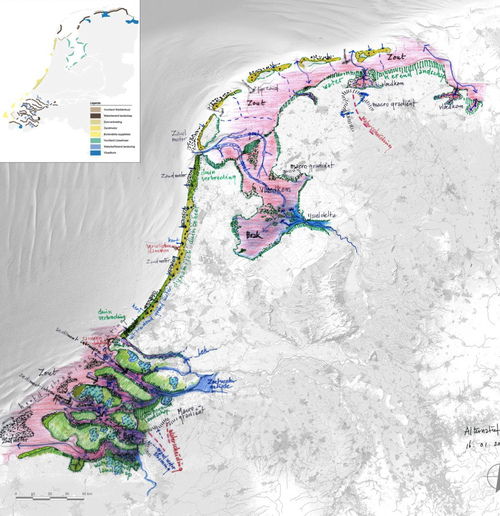 De studie ‘Meegroeien’ is afgelopen week gepresenteerd op het Deltacongres. Deze vierde strategie voor de omgang met extreme zeespiegelstijging zet in op het gebruik van natuurlijke dynamiek en het invangen van zand en slib. Binnen een interdisciplinair consortium droegen Lodewijk van Nieuwenhuijze en Pieter Schengenga (H+N+S) bij aan de ruimtelijke verkenning en het ontwerp van een aantal alternatieven.