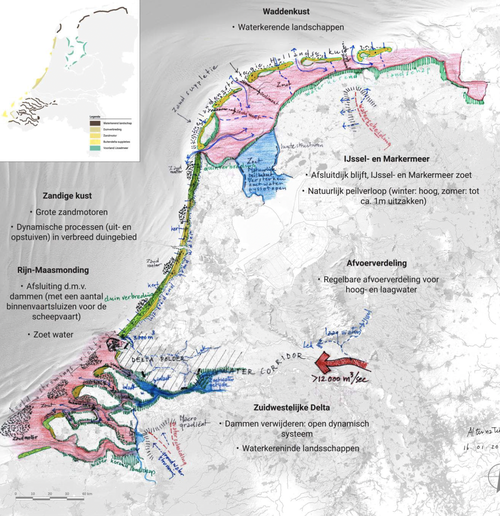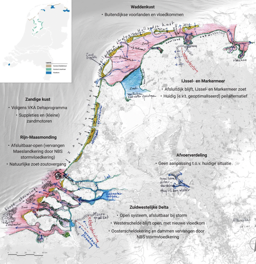 Aan het onderzoek dat in het kader van het Kennisprogramma Zeespiegelstijging van het ministerie van Infrastructuur en Waterstaat en de Deltacommissaris is gedaan, hebben experts uit de volle breedte van de watersector meegewerkt. Het onderzoek werd geleid door Sweco. Deltares, Wageningen University & Research, HKV, H+N+S Landschapsarchitecten, bureau Stroming, NIOZ, W+B, Haskoning, Van Oord en Boskalis hebben er aan meegewerkt. Het Wereld Natuur Fonds en de topsector Water en Maritiem en het ministerie van Landbouw, Voedsel, Visserij en Natuur hebben het onderzoek mede mogelijk gemaakt. De resultaten van de studie worden samen met het onderzoek naar de andere denkrichtingen gebruikt bij de verdere uitwerking per regio van mogelijke oplossingen om de zeespiegelstijging op de lange termijn op te vangen.